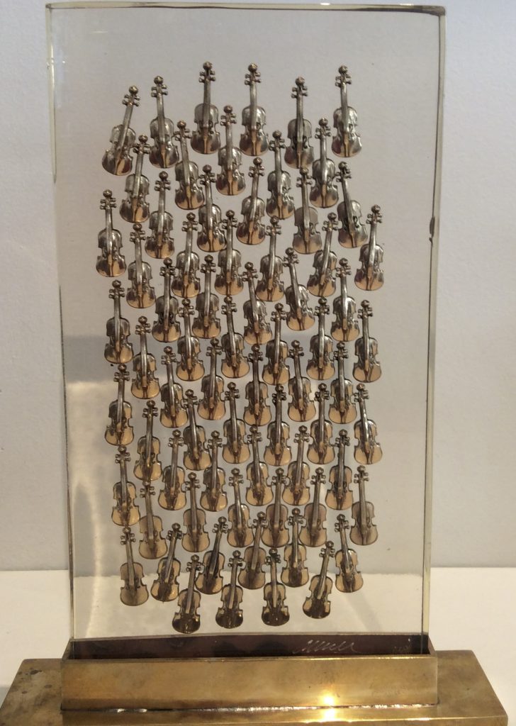 Arman, né Armand Fernandez, est né le 17 novembre 1928 à Nice. C’est un artiste franco-américain connu pour ses accumulations d’objets en tout genre. Il est peintre, sculpteur et plasticien. Arman découvre l’art très tôt. Son père, antiquaire d’origine espagnole, amateur d’art et de musique, lui fait découvrir dès son plus jeune âge la peinture et le violon. Elève brillant, Arman commence à peindre à 10 ans, et se passionne également pour les échecs. C’est tout naturellement qu’il intègre en 1946 l’école des Arts décoratifs de Nice, ville dont il est originaire. Puis sa passion pour la philosophie et les arts d’Extrême-Orient l’oriente vers l’Ecole du Louvre en 1949-1950 où il obtient deux certificats d’Histoire de l’Art spécialisés dans l’étude de la Chine de la Haute Epoque.