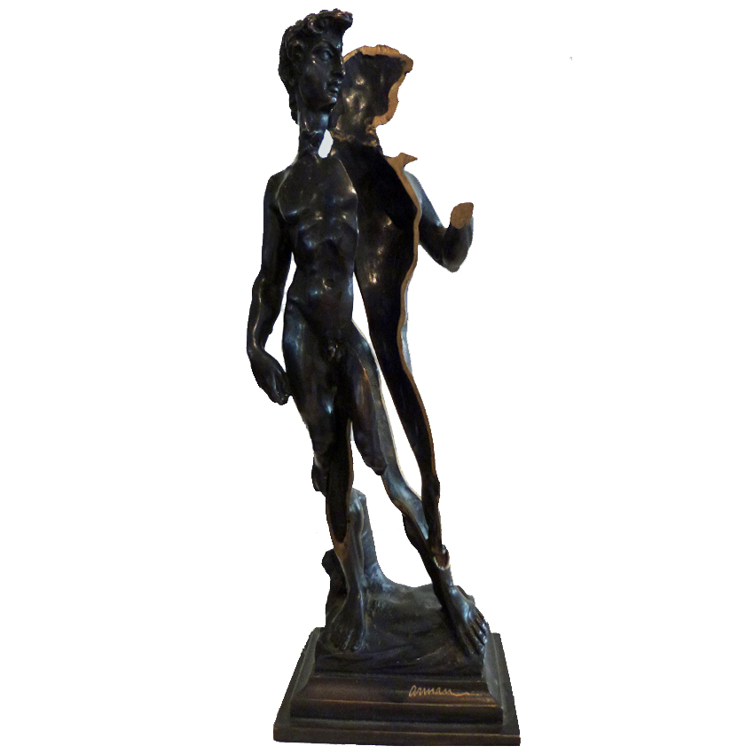 En 1960, Arman fonde avec, entre autres grands noms, Yves Klein, César, Nikki de Saint Phalle et Christo, le groupe des Nouveaux Réalistes qui prône l’utilisation de matériaux de récupération. Il introduit notamment des ordures et déchets dans ses œuvres, qui proviennent des poubelles de ses amis. Dès 1961, l’artiste est exposé à New-York, et dans toute l’Europe. En 1972, il devient citoyen américain, tout en gardant la nationalité française. Dans les années 1980, il investit les espaces publics de près d’une centaine de villes dans le monde par la réalisation d’œuvres monumentales. Il fait ériger de gigantesques tours-monuments urbaines, des violons, des voitures, ou des horloges comme celle de la Gare Saint Lazare à Paris. Ses œuvres sont présentées dans les 90 plus grands musées du monde. Il reçoit en 1989 la légion d’honneur de la part du président François Mitterrand. Il est exposé en permanence depuis les années 2000 sur les 4 sites de la Galerie Estades de Michel Estades, à Paris, Lyon, Toulon, et Baden-Baden (Allemagne). Armand Fernandez, l’artiste spécialiste de l’accumulation d’objets décède à New York le 22 octobre 2005.