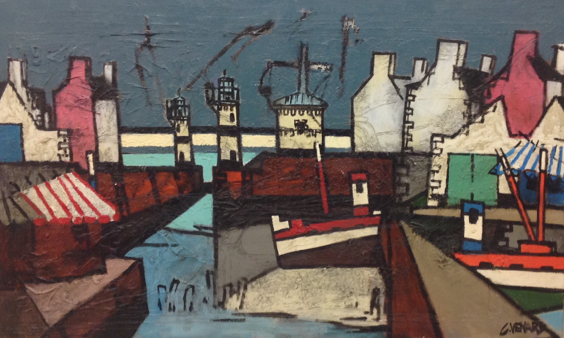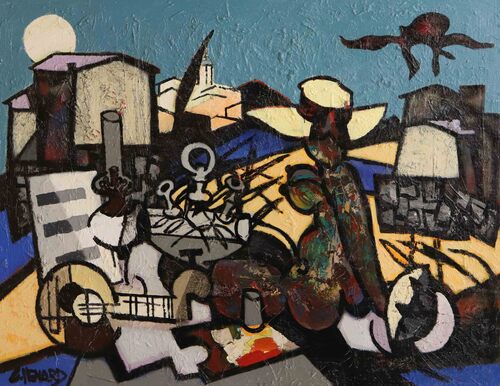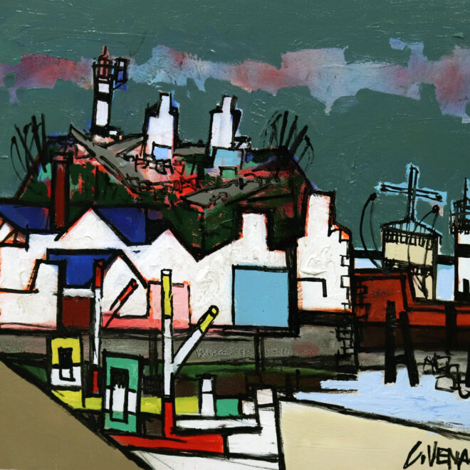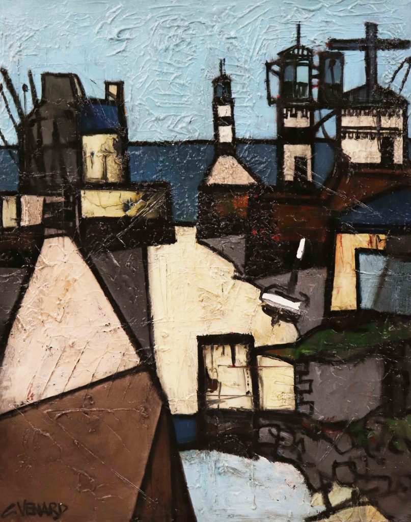 Claude Venard est un peintre amoureux de la vie qui travaille ses toiles dans une allégresse créatrice. De style post-cubiste, il aime accentuer les qualités chromatiques de sa palette, se livrant entièrement à l’ivresse de la belle matière. Il en résulte des toiles fortes aux couleurs lumineuses.