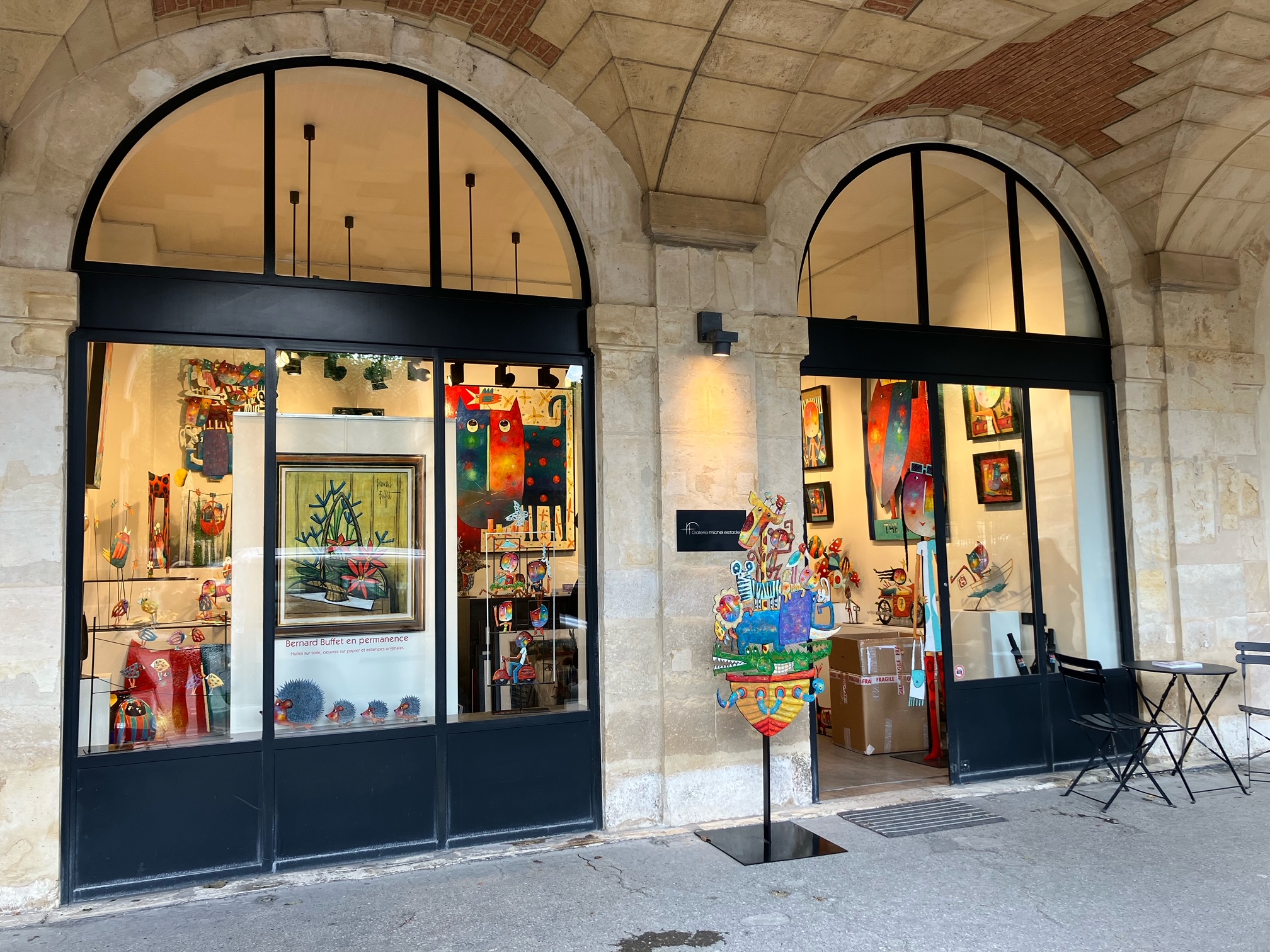 The Estades Gallery opened in 2009 on a mythical Parisian plaza, classified as a historical monument. This former Royal park named Place des Vosges is one of the most beautiful places in the city. Between the King’s and Queen’s pavilions, not far from the homes of the Marquise de Sévigné and Victor Hugo, the Galerie Estades in Paris, intimate and contemporary in style, found its place under the arcades of an elegant neighborhood in the Marais to welcome French and international clients.