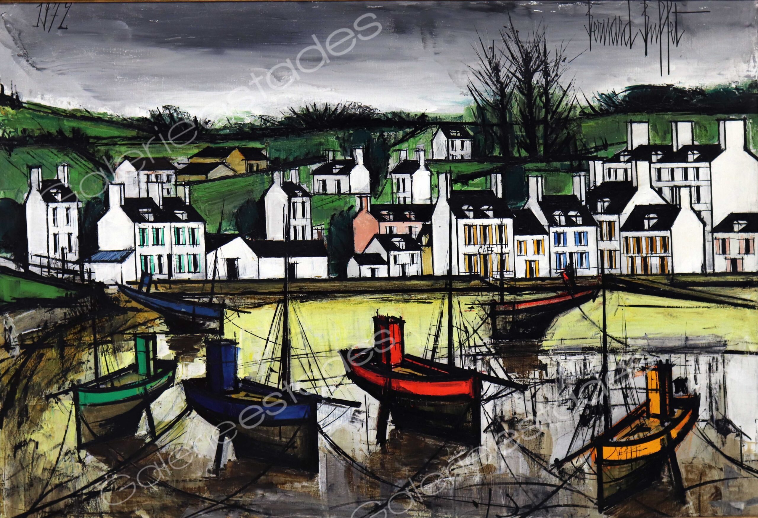 BUFFET Bernard, Huile sur toile intitulée « Doëlan, la plage et le port » 89 x 130 cm