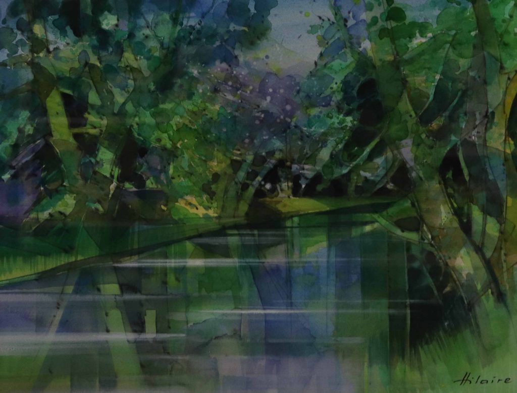 Camille Hilaire nourrit son talent de ses voyages tout au long du siècle, ses tableaux en expriment la beauté et la diversité, de Venise à la Normandie qu’il affectionne particulièrement. Son œuvre est au seuil de la figuration et du post-cubisme. Toute sa vie, il a su cultiver une autonomie créative, dégagée des grands courants avant-gardistes empruntés par la grande majorité de ses contemporains. Son œuvre est authentique et lumineuse, son univers riche et coloré. De nombreuses monographies lui sont consacrées à travers le monde et il reste dans l’histoire de l’art comme l’un des peintres qui a marqué la moitié du XXe siècle. Camille Hilaire est exposé en permanence depuis 1990 sur les 4 sites de la Galerie Estades, à Paris, Lyon, Toulon, et Baden-Baden (Allemagne).