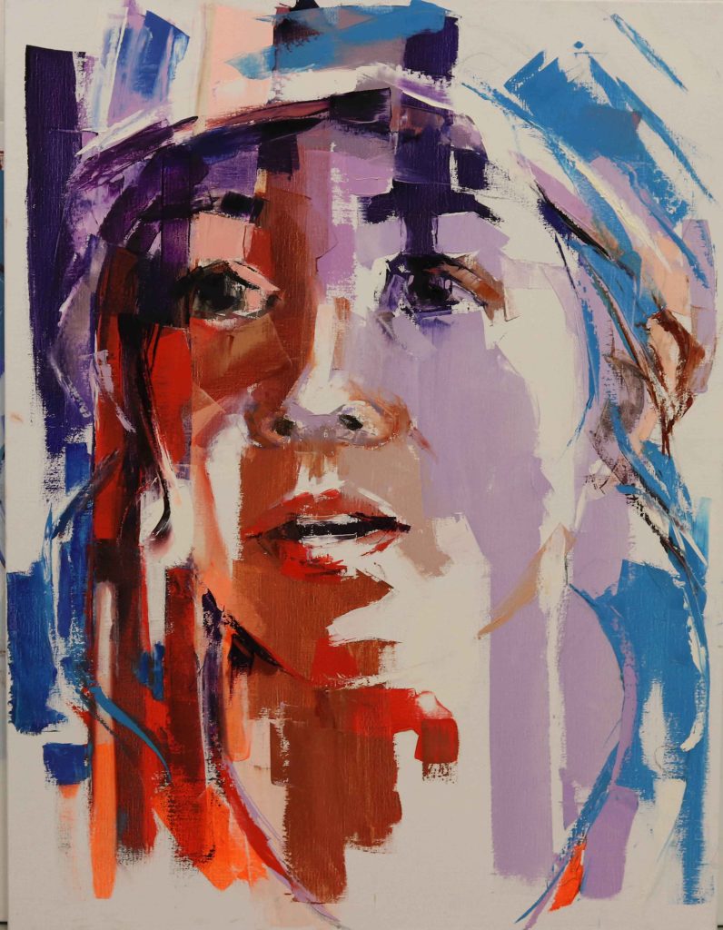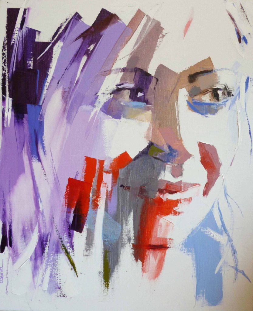 « Les visages féminins me touchent plus particulièrement et déclenchent mon envie de peindre ». Elisabeth Besnier reproduit à merveille l’émotion des visages. Elle utilise une technique bien particulière pour réaliser ses compositions picturales. Ses modèles sont dans un premier temps photographiés ou filmés. Puis les clichés intéressants sont rassemblés et mis en attente. Une maturation intellectuelle, de quelques jours à plusieurs mois, doit en effet se produire avant tout travail sur la toile. Il s’agit, pour Elisabeth Besnier, de bien comprendre ce qui a interpellé l’artiste peintre dans le choix de la photographie, afin de le restituer voire de le sublimer au mieux. Grâce à la sûreté de son dessin et à sa science exigeante des poses de ses modèles, elle fait apparaître matière ou transparence dans un jet de couleurs.