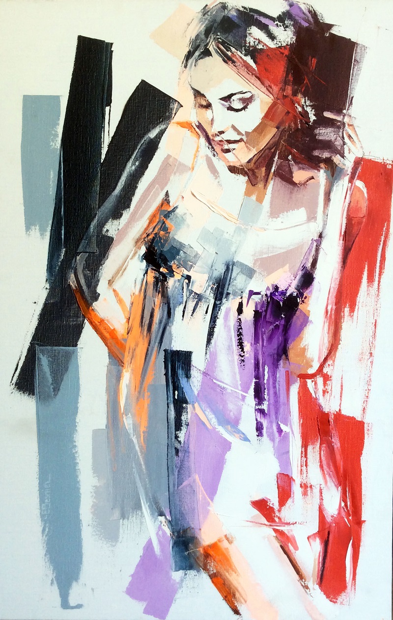 Elisabeth Besnier nous offre des portraits de femmes reconnaissables au premier regard, avec leurs jeux de couleurs tout à fait exceptionnels. Ses tableaux sont chaleureux et lumineux, les traits sont expressifs et les corps impeccables sous la beauté des drapés. Une émotion pure au féminin.