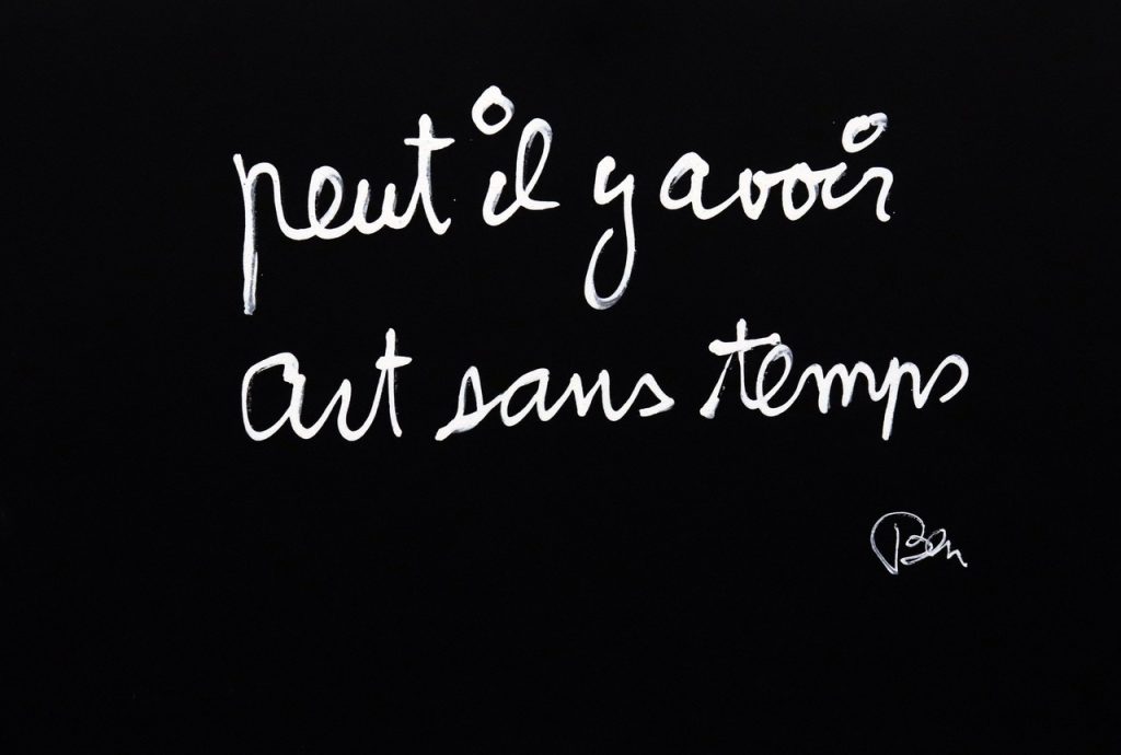Since 1975, he has been living and working on the heights of Saint-Pancrace, in Nice. Ben’s works can be found in the world’s largest private and public collections, including the MoMA in New York, the Art Gallery of New South Wales in Sydney, the MUHKA in Antwerp, the Musée National d’Art Moderne in Paris and the Musée d’Art Moderne et d’Art Contemporain in Nice.