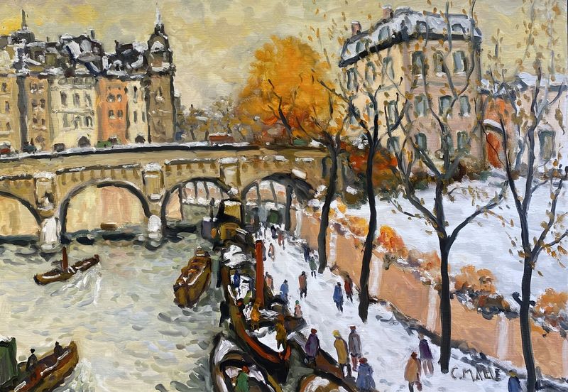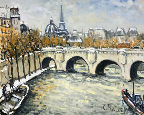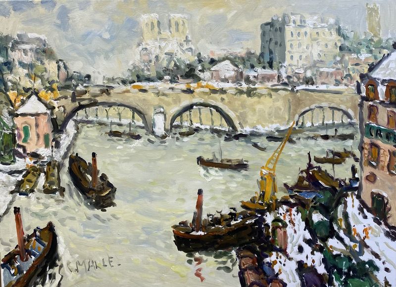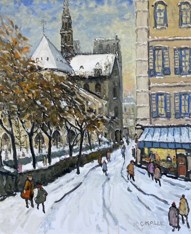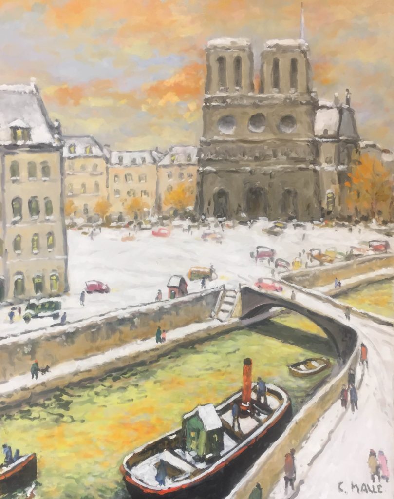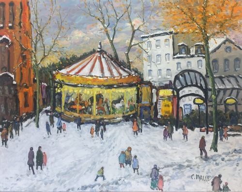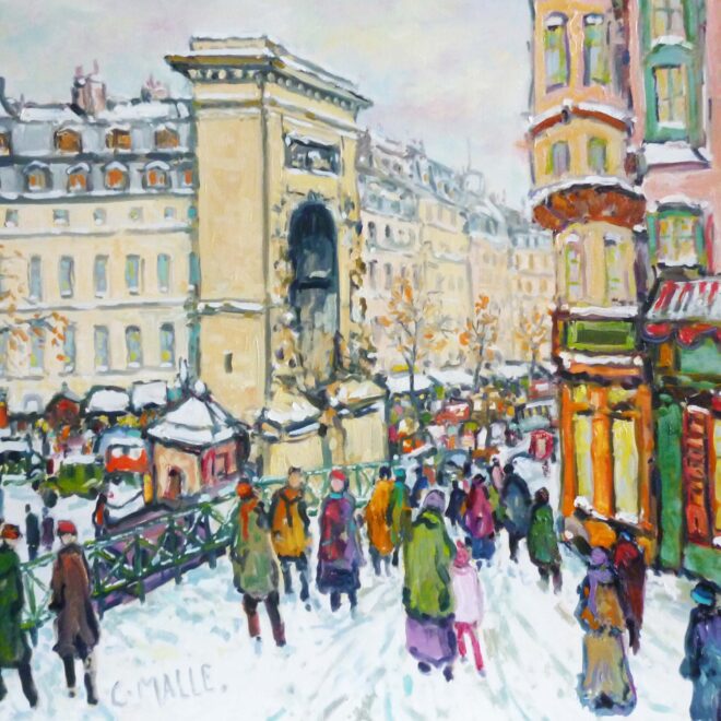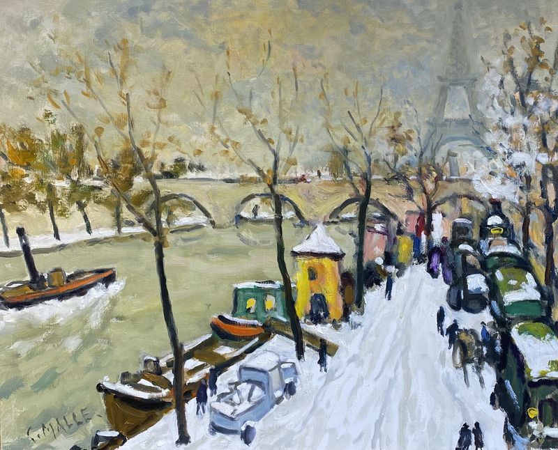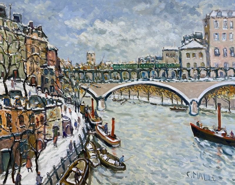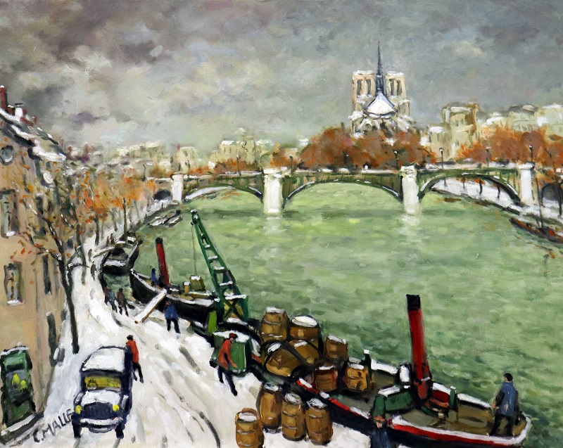 Charles Malle is an eternal dreamer often compared to Albert Marquet. Instead of portraying the reality all around us, he prefers to depict the privileged period of childhood. The artist loves to evoke his wonderment when, as a child, he saw the sea in Normandy for the first time. The war deprived him of the seaside but allowed him to discover the French capital and Paris went on to become one of his obsessions. “I think I have remained a teenager enchanted by life. Painting isn’t a refuge for me, but an opportunity to sing the praises of past and present existence. My memories are a source of wonderment. They embellish my daily life when I portray them in my work.” (From Jean Perreau’s book “Charles Malle, une saveur d’éternité”).