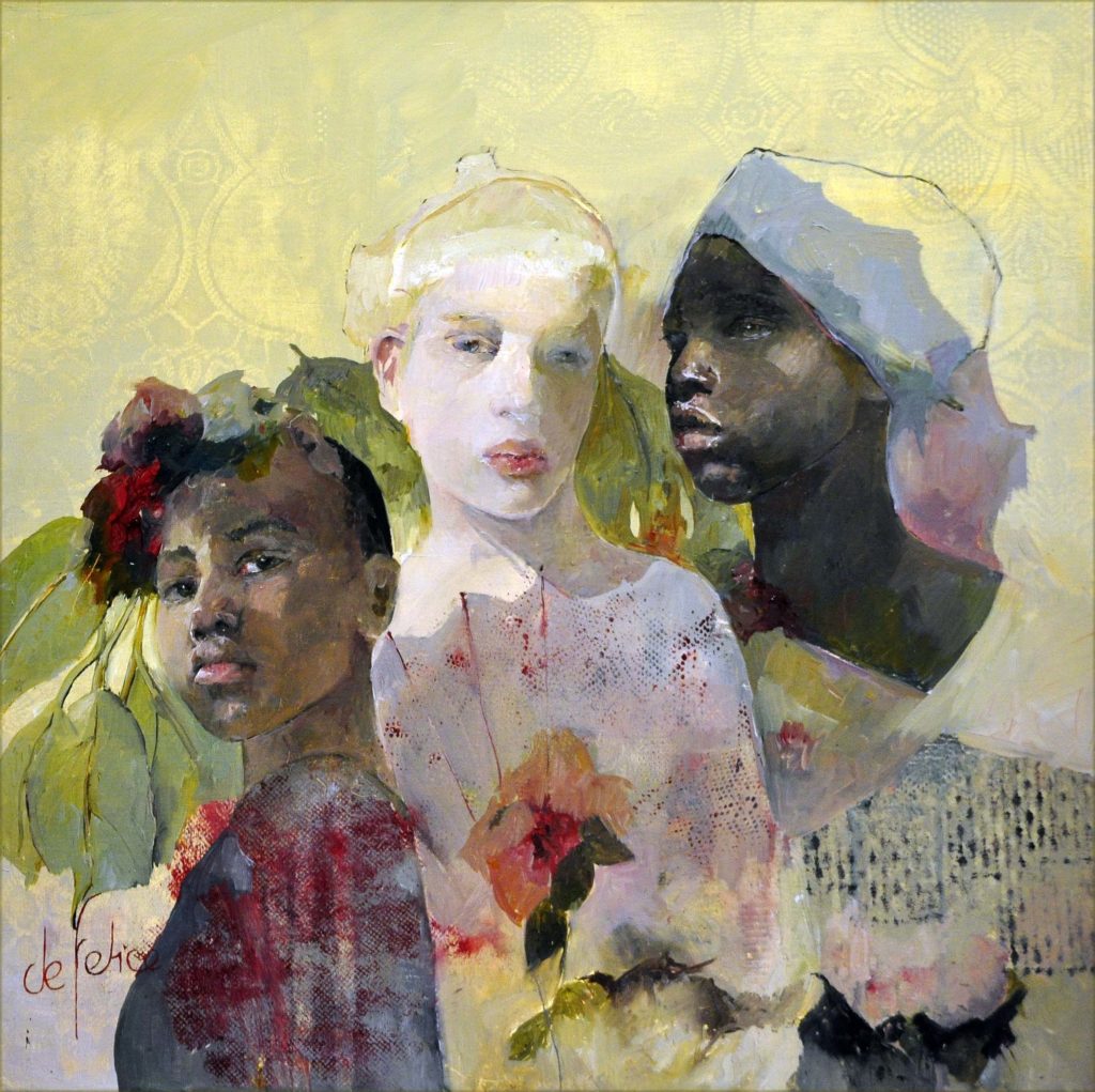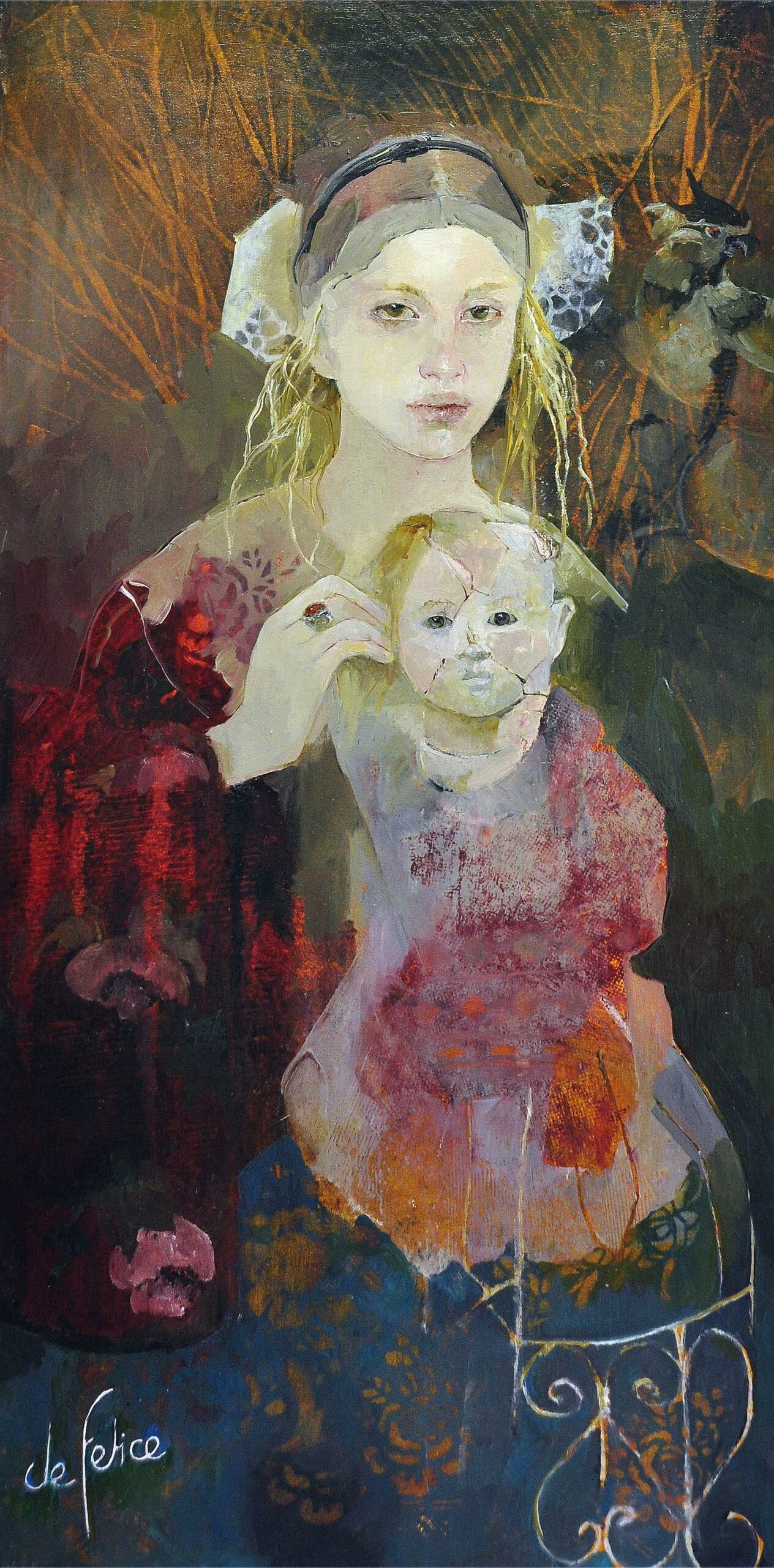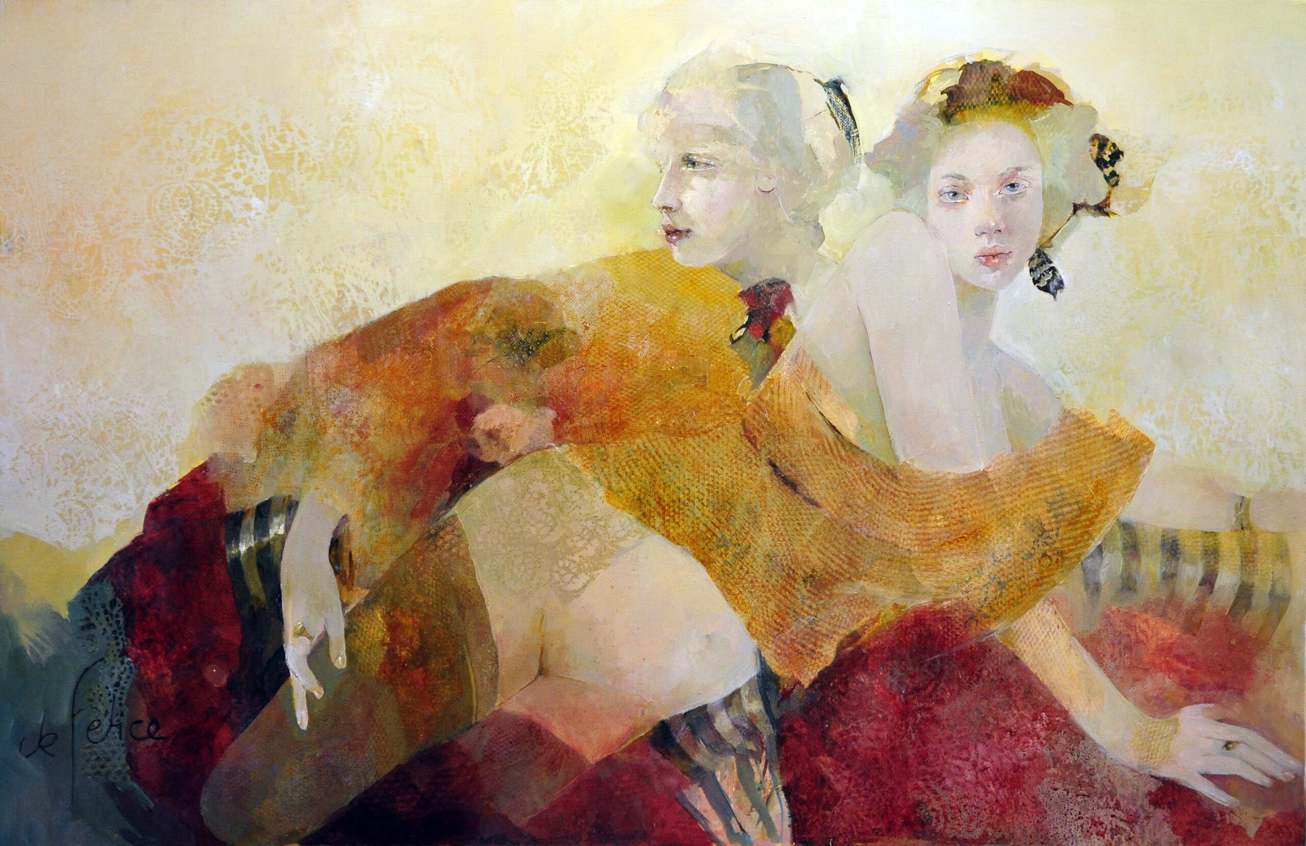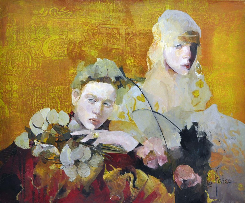 Starting from distinctly female subjects, we are starting to apprehend intimate echoes of the subconscious. Birds or other animals lose their gender and embody symbols found in mythology or stories molded in the collective unconscious. Defining a work’s central theme is a multi-dimensional challenge. Beauty feeds her universe, not just beauty for the eyes but also, and above all, beauty for the soul. The artist offers us a singular unique respite in today’s contrasting art environment.