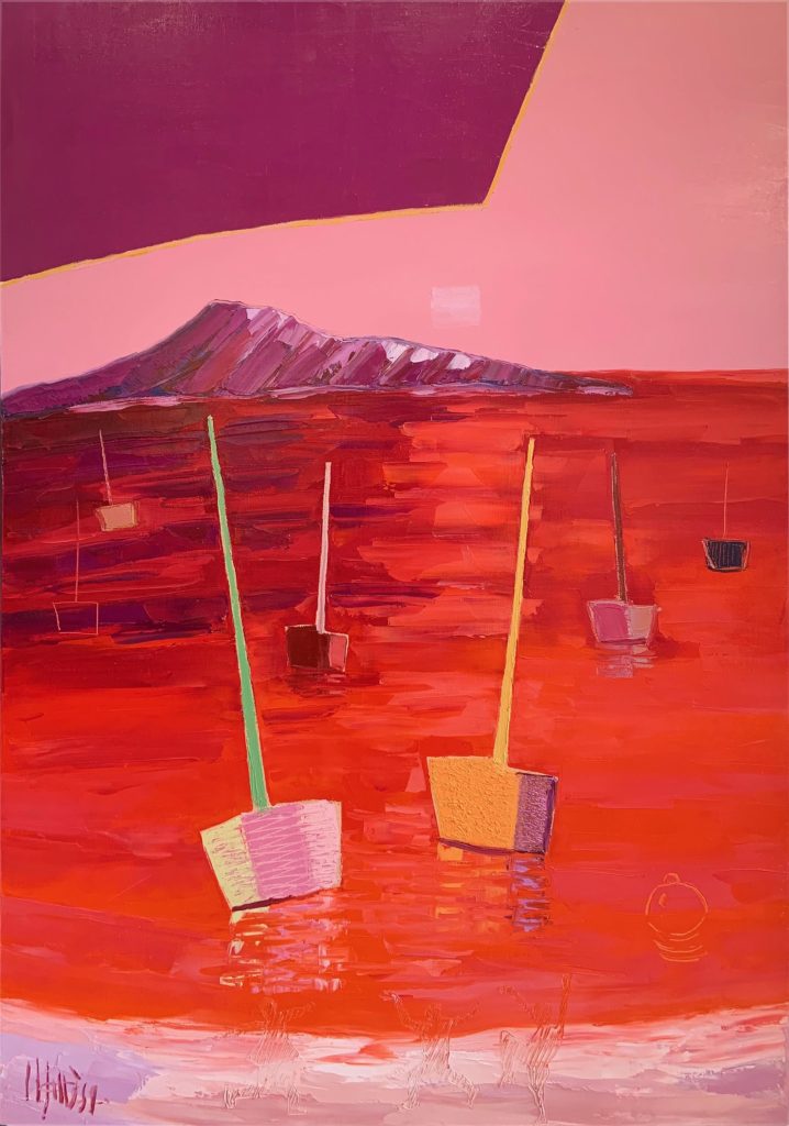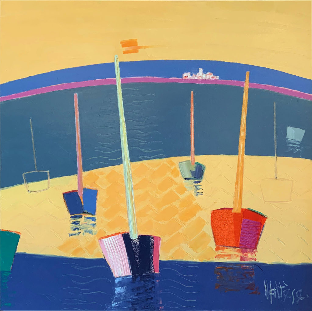 Jean-Pierre Maltèse is an insatiable and inquisitive artist. The originality of his depictions of Mediterranean landscapes is striking. The uniquely-personal shape of his boats and the square sun that lights up his canvasses form genuine artistic trademarks.