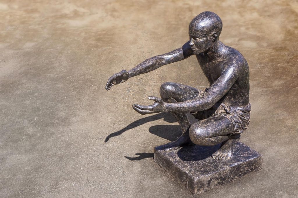 Her bronze figures show simple scenes that seem to encapsulate our joy and hope for a better future. Contemplation guides her art. Through her work, she invites the viewer to relive moments she has seen and experienced. Furthermore, she seeks to communicate all that she has been able to appreciate and feel. Her work is rooted in geography and history. Marine de Soos is inspired by the people of Africa and Indonesia, whose ancestral gestures extend through time immemorial.