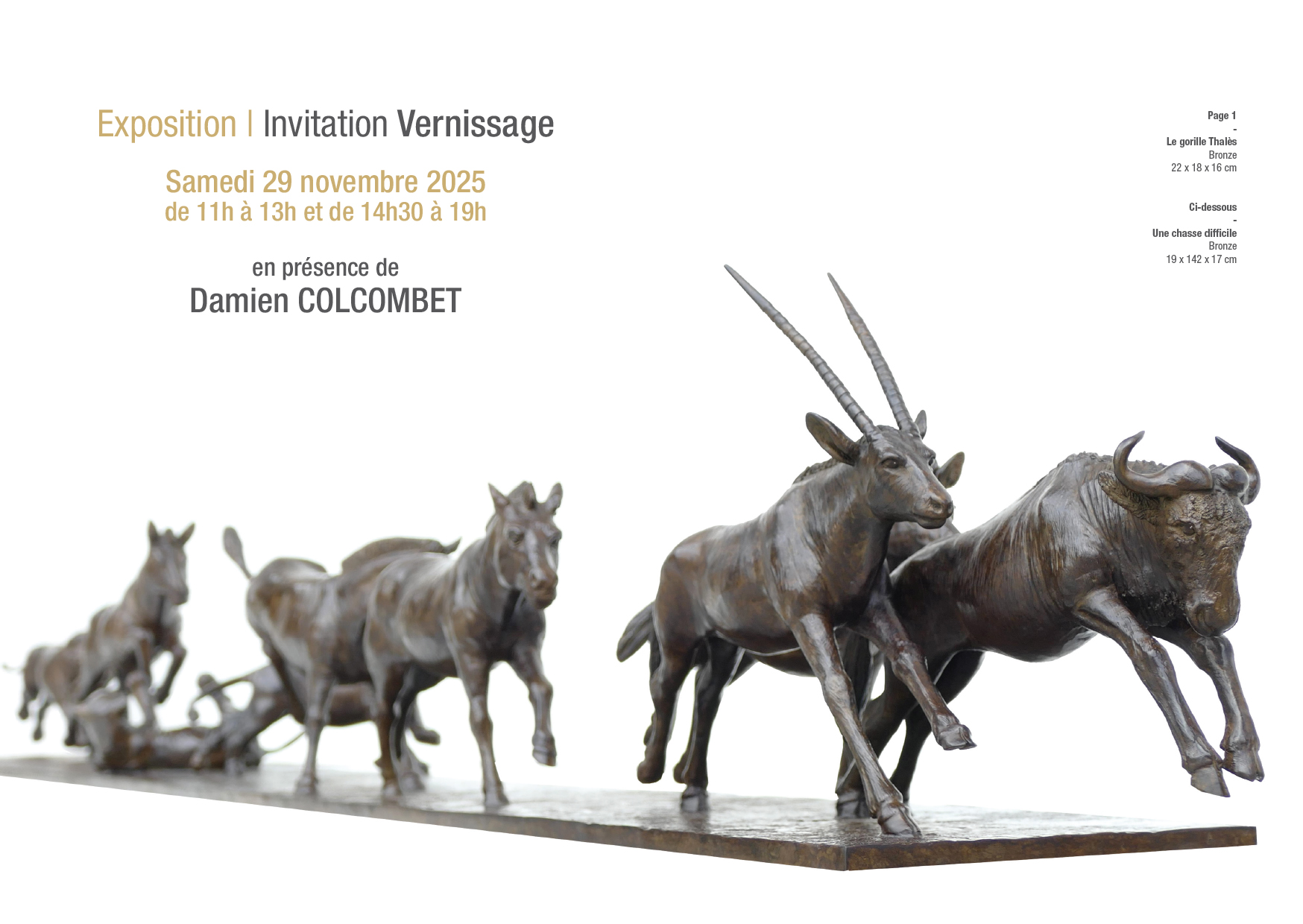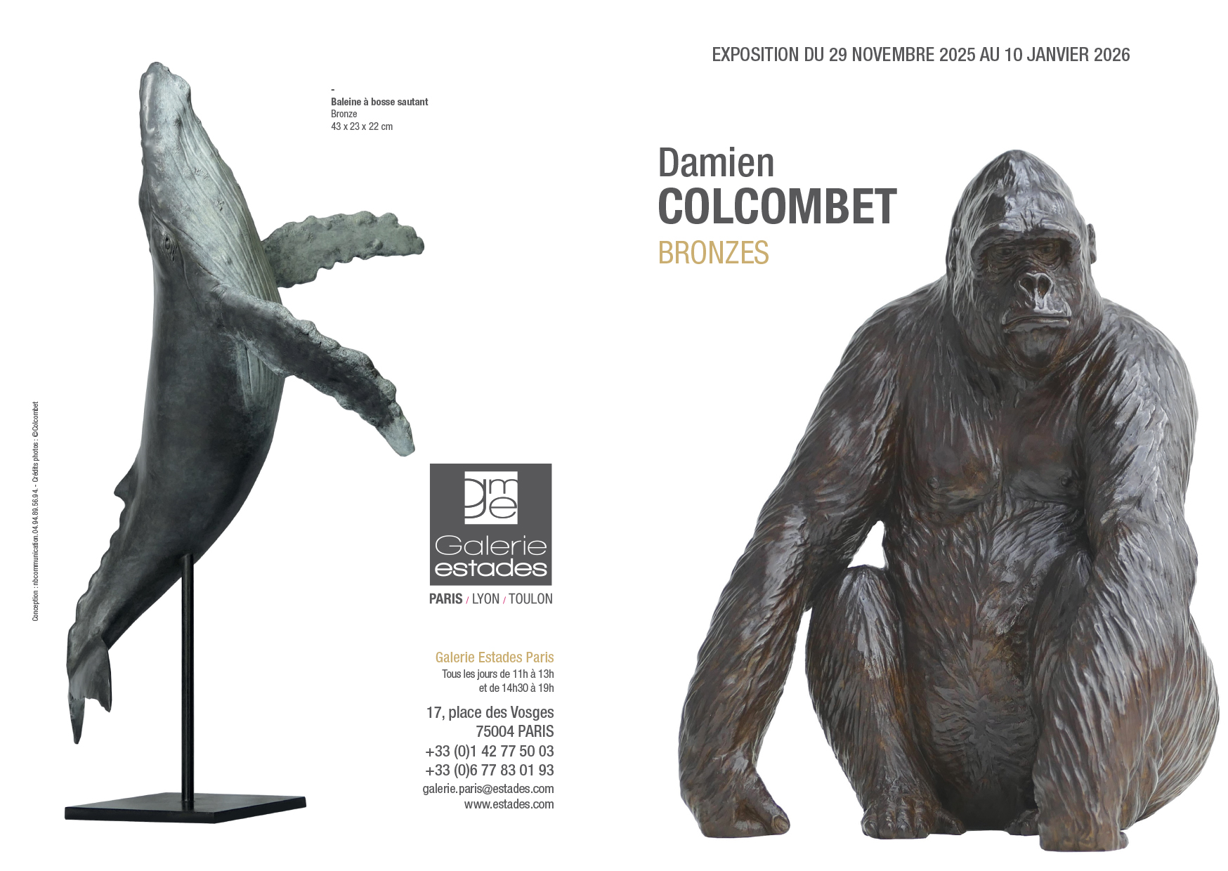 La galerie Estades Paris est heureuse de vous accueillir pour la nouvelle exposition des bronzes animaliers de Damien Colcombet.