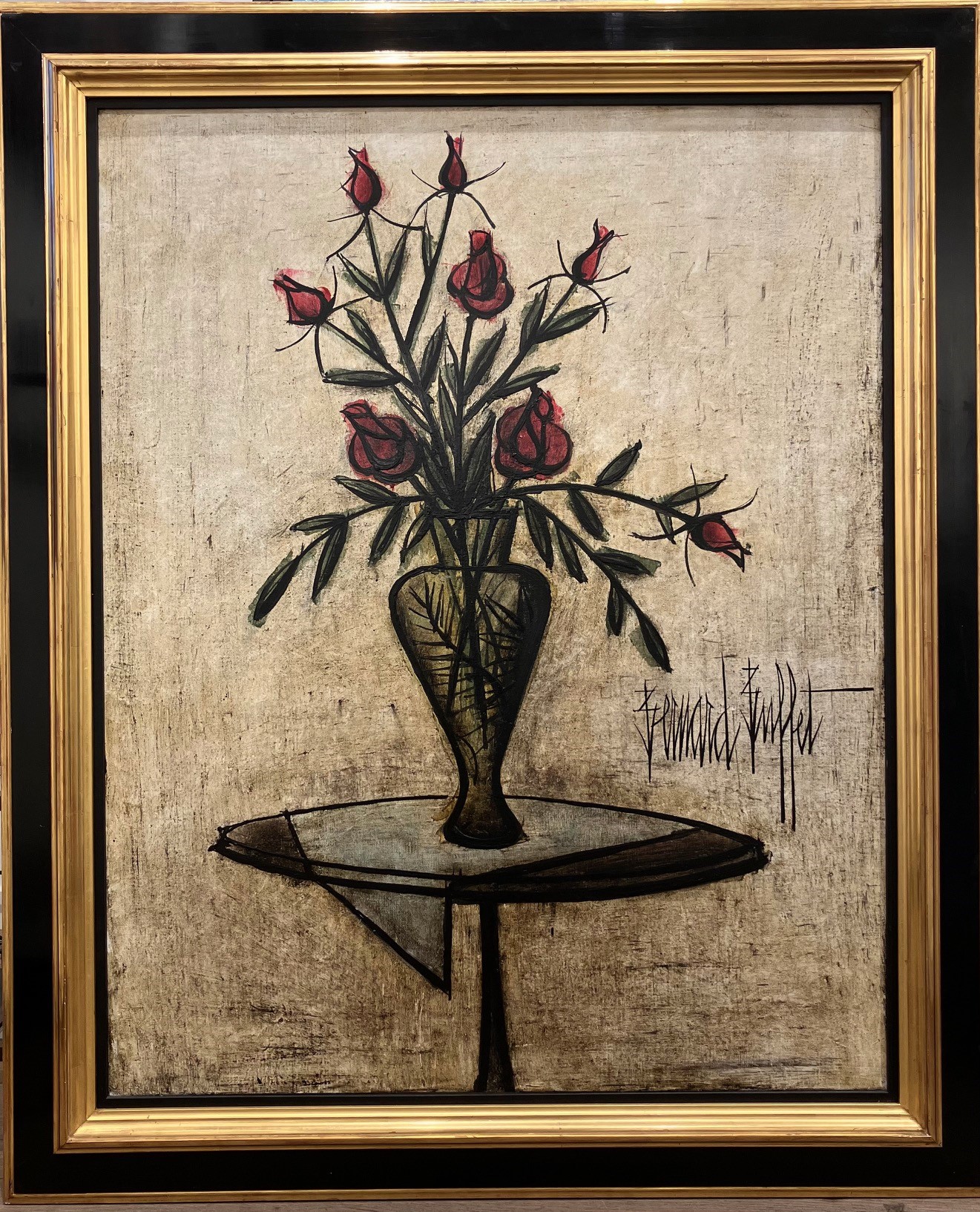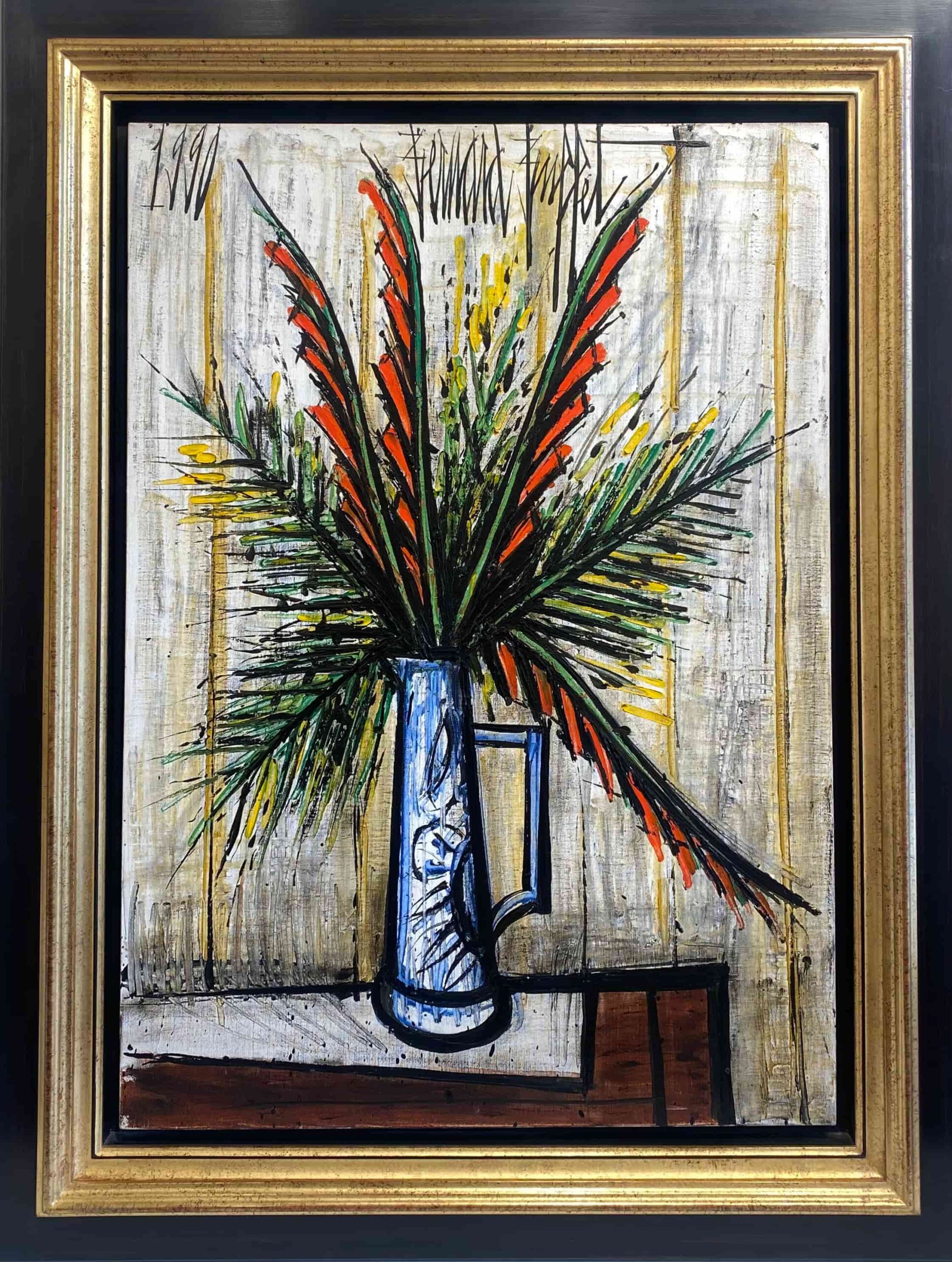 Les fleurs de Buffet ne célèbrent pas seulement la beauté fragile du végétal : elles deviennent des icônes. Isolées dans des intérieurs dépouillés, elles témoignent à la fois d’une quête d’ordre et d’une émotion contenue. En réinventant ce thème pictural ancestral, Buffet y projette sa vision du monde : rigoureuse, dramatique, intensément vivante.