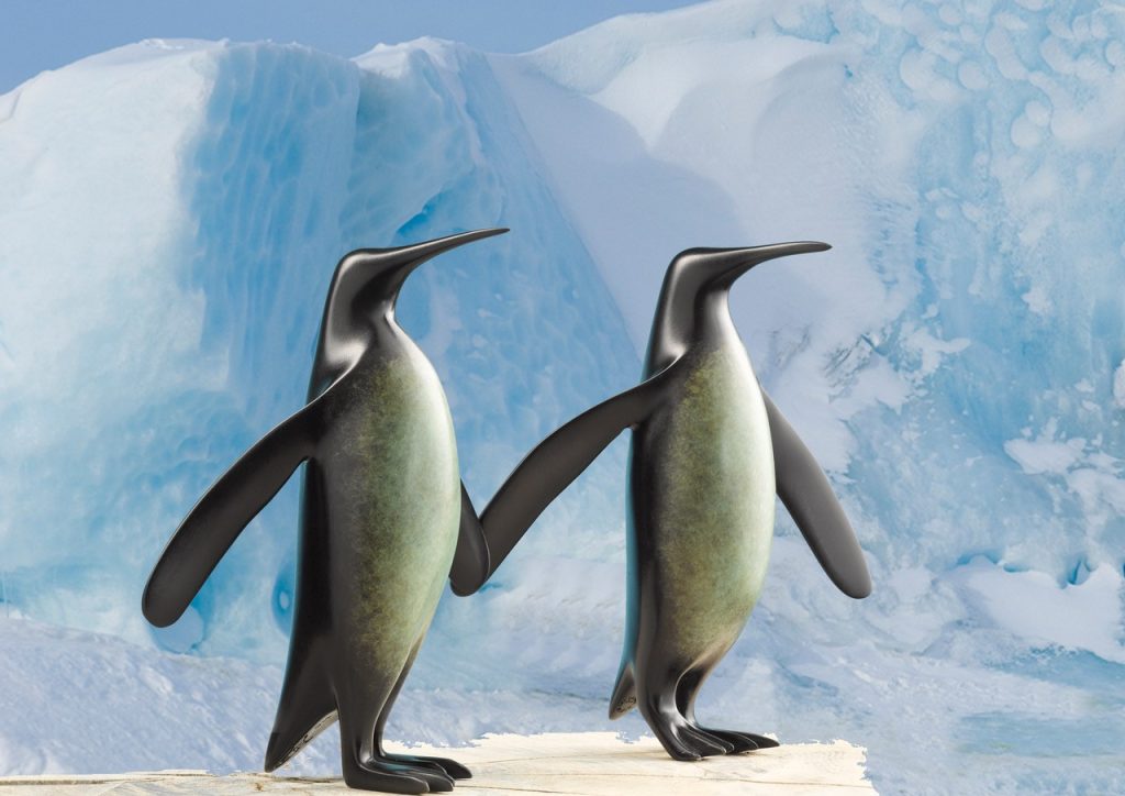 L’élégance et la légèreté de l’oiseau sont suggérées. Le point d’équilibre du volatile doit être fixé dès le début du processus de création de la sculpture. Cette performance, en combinaison avec l’attrayante patine marbrée, qui suggère légèreté et apesanteur, cache habilement le fait qu’il s’agit de matériaux lourds et rigides. En fin de compte, ladite patine augmente ainsi la qualité tactile des sculptures.
