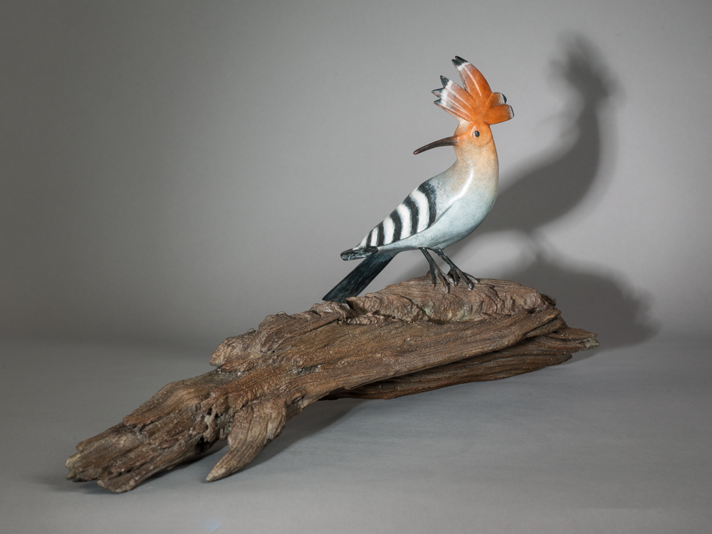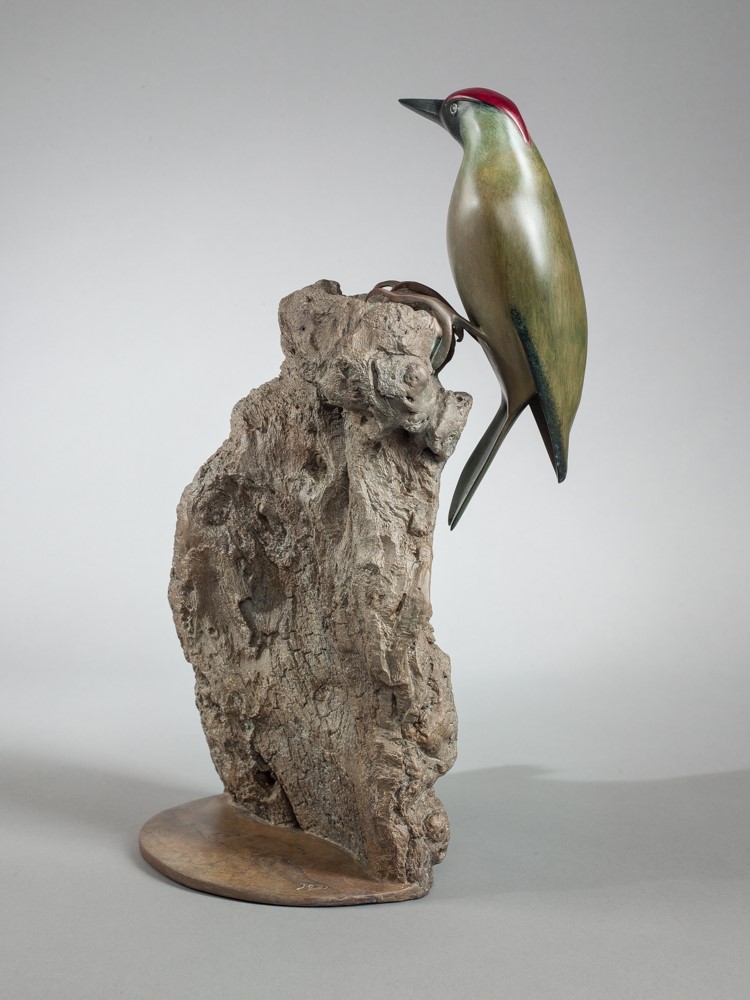 Très sincèrement, je ne puis en citer que quelques-uns. François Pompon (France 1855-1933), réalisa les marbres de Rodin, avant de s’affirmer comme l’un des sculpteurs animaliers les plus importants de son temps. Son œuvre suscita le courant que je qualifierais de ‘Mouvement de la Forme’, en réaction aux travaux des Animaliers anecdotiques tels que Barye et Fremiet qui s’intéressaient surtout à la Lutte des Titans; Gorille enlevant la belle innocente (thème de ‘La Belle et la Bête’ et plus tard King Kong), Léopard en lutte avec le serpent etc. Je citerai ensuite Adrian Sorrel (Angleterre, 1932) et Claude Lhoste (France, 1929) qui recherchent le même niveau de fluidité et de perfection que Dedrie. Le champ d’action de Lhoste s’étend à une série de sujets plus vaste, ce qui s’explique par sa longue expérience. Dans le catalogue de l’exposition annuelle Birds in Art, (Les oiseaux dans l’art) qui est organisée depuis 25 ans au Musée d’art Leigh Yawkey Woodson Art à Wausau (USA), je découvre quelques artistes dont l’œuvre est comparable à celle de Mark Dedrie : Emily Parlman (USA,1927), Burt Brent (USA, 1938), chirurgien plastique dont les sculptures portent l’empreinte de son activité professionnelle, Charles Almond (USA, 1938), Geoffrey Dashwood (UK, 1947) et Ross Matteson (USA, 1957). Ce dernier est le plus proche de Dedrie, mais plus dur et distant dans la représentation des oiseaux. En fait, la sensualité de Dedrie se rapproche plus de celle des sculpteurs sur bois, tels que Hank Tyler (USA 1944) et le Néerlandais Jaap Deelder (1952), qui polissent leurs sculptures en les enduisant d’huile, rendant ainsi visible la nervure du bois.