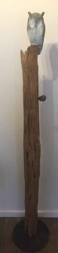 Less is more (Moins c’est plus) telle est la pensée sous-jacente de Mark Dedrie. Facile à dire. Produire des sculptures d’animaux convaincantes et stylisées exige un long processus préliminaire au cours duquel il s’agit d’expérimenter, de prendre des décisions ardues, de faire des choix douloureux. Puisque ses sculptures sont, en effet, réalisées avec tant de soin et de précision, il faut, pour pouvoir les apprécier pleinement, non seulement les regarder de loin, mais aussi pouvoir les toucher afin de ressentir ce que l’artiste avait éprouvé – c’est ce qu’un ami sculpteur m’a appris il y a belle lurette. Je suivis son conseil lors d’une exposition au Musée d’Orsay à Paris et touchai bon nombre de sculptures … jusqu’au moment où des gardiens furieux nous en empêchèrent en nous menaçant de nous jeter dehors. J’opte donc pour une visite au musée en plein air du Middelheim à Anvers, où l’on peut caresser les sculptures, tel mon favori, l’Ours polaire de Pompon, sans se faire apostropher par les gardiens. Les sculptures de Marc Dedrie, tel Stone Owl, le prince-consort de Pallas Athéna, la déesse grecque de la sagesse et des arts, ou l’élégant courlis au long bec et le gracieux martin-pêcheur qui semble prêt à plonger dans quelque mystérieux ruisseau, toutes supplient qu’on les touche. Dans sa recherche inlassable de l’essentiel, Mark Dedrie a apuré son sujet tout en lui conservant sa vivacité dans sa gracieuse coquille de bronze nacré. Ceci découle de son amour du métier, du choix des matériaux et des outils qu’il utilise. Beaucoup dépend de la manière dont il chauffe et aplatit la cire et de la précision avec laquelle il façonne le moule et lisse le modèle en cire qui en résulte. Durant le processus de la fonte du bronze, le modèle original se perd – cire perdue. Mais il ressurgit après démoulage, comme un sphinx renaissant de ses cendres. Si les sculptures peuvent être admirées à distance, elles gardent cependant toutes leurs qualités lorsqu’elle sont observées de près. La qualité nacrée de la matière apparaît alors avec netteté. La gageure consiste à appliquer la patine – causée par une réaction chimique au feu – de manière à la rendre intéressante sans qu’elle ne devienne criarde. (Et fort éloignée des patines à couleur d’excréments que les sculpteurs néerlandais semblent préférer).