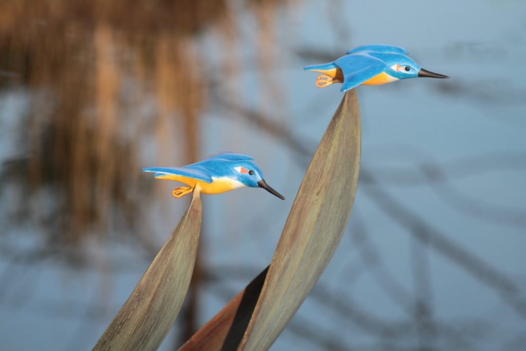 De prime abord, l’attention du spectateur étudiant les sculptures de Mark Dedrie (1962) est attirée par l’aspect lisse et la stylisation poussée de celles-ci. En effet, malgré le fait que chez Dedrie, la couleur cède le pas à la forme, son approche n’est pas à proprement parler classique. Il s’agit plutôt ici de la transfiguration d’un monde de couleur et d’action en un univers de présences, de volumes et de lignes pures, et il parvient à évoquer la légèreté à l’aide d’un matériau lourd: le bronze. Il en résulte des sculptures visuellement attrayantes et agréables au toucher. Ils ne sont guère nombreux les sculpteurs capables de capter effectivement le style et l’allure des animaux, et encore moins d’atteindre le raffinement de Mark Dedrie. Le résultat sont des sculptures fines et sensuelles, traduisant avec grâce le style des canards et autres échassiers.
