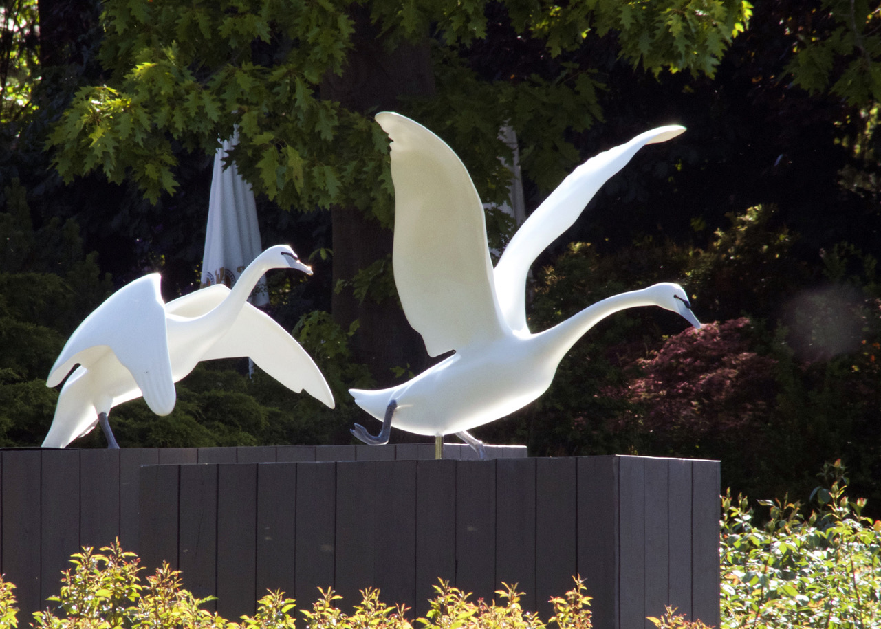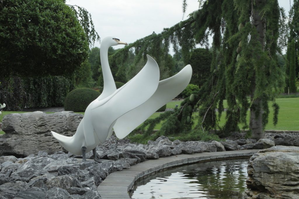 L’oiseau est symbole de liberté, déclare Mark Dedrie, mais paradoxalement toute forme de symbolisme disparaît peu à peu de son œuvre. Ses figures humaines, symboliques et androgynes, cèdent la place à des oiseaux et des animaux reconnaissables, certes, mais qui requièrent la quête d’un sens plus profond. Et pourtant, malgré une certaine connaissance du monde des oiseaux, celui-ci reste mystérieux et insaisissable aux yeux de l’homme du 21ième siècle, tout en restant le messager d’une signification symbolique. De toutes les créatures du monde animal les oiseaux se rapprochent les plus des anges! Mark Dedrie regarde les oiseaux avec empathie, même s’il transcende ce regard. Il observe l’oiseau vivant aussi bien que le spécimen empaillé. Il étudie leur silhouette, leurs attitudes. Il fait appel à la photographie pour tenter de pénétrer dans leur monde et se laisse bercer par ses rêves et ses phantasmes. Avant même qu’il n’entame son travail, les différentes couches de ses yeux et de son cerveau filtrent et interprètent toutes les caractéristiques plastiques propres au canard mandarin ou au courlis. Il conçoit les sculptures en cire ou plastiline grandeur nature et en utilisant ses mains et ses doigts comme dans un acte d’amour. Chaque nouvelle sculpture procède d’une gestation douloureuse, alors qu’il s’efforce de capter ce qui rend ces créatures si inaccessibles: leur pureté et leur légèreté. Il croit que c’est en simplifiant ses sujets qu’il réussira le mieux à transmettre leur état d’esprit. Car les oiseaux eux-mêmes ne collaborent pas. Bien sûr, chaque espèce présente une silhouette typique qui permet de reconnaître le ‘hibou’ ou la ‘corneille’. Pourtant un oiseau est bien plus que cela – il y a aussi la personnalité, l’attitude particulière et le comportement caractéristique. En outre, les parties protubérantes, telles que les pattes et le bec, posent un problème de transposition, de recréation sur le plan technique et artistique et risquent même de rompre l’unité de la sculpture. Malgré ces transpositions, l’on identifie aisément le courlis, le mandarin, le petit hibou, le gracieux martin-pêcheur. Et le cygne si fascinant.