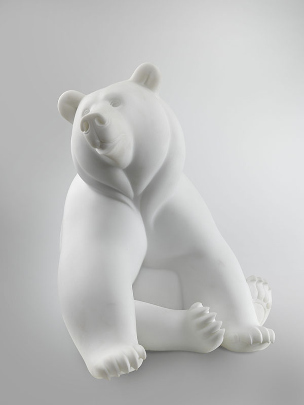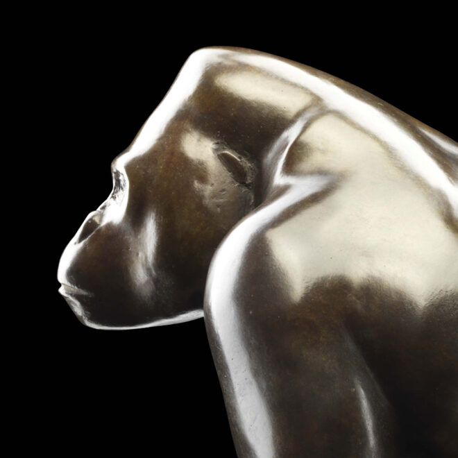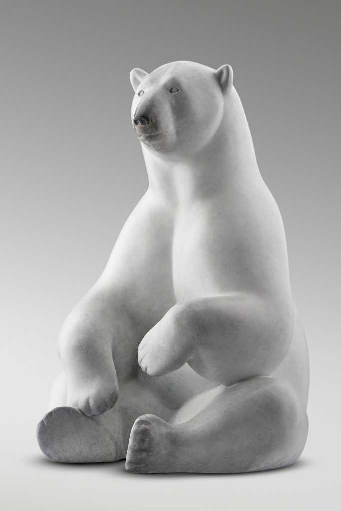 Captivé depuis l’enfance par le dessin et le modelage, Michel Bassompierre grandit dans une famille nombreuse entre une mère artiste et un père scientifique. Peut-être cette dualité va-t-elle influencer son travail futur puisqu’il se caractérise en effet par une approche plastique résolument contemporaine associée à une rigueur anatomique essentielle. Formé dans l’atelier de Leleu à l’école des Beaux-Arts de Rouen, Michel Bassompierre apprend à regarder. Ce sont des kilos de croquis qu’il réalise au zoo, dans les ménageries des cirques ou encore au musée d’Histoire naturelle et par lesquels il construit sa compréhension du corps de l’animal, cette machine savamment articulée dont il saisit la ligne et le mouvement. C’est précisément cette vie qu’il arrive à faire transparaitre rendant son œuvre tellement sensible. Si le dessin est déterminant, le modelé qui s’y applique vient parfaire le tout. En effet, dans la lignée de François Pompon, Michel Bassompierre se débarrasse de l’anecdote pour aller à l’essentiel. Privilégiant les animaux aux formes rondes, éléphants d’Asie, gorilles, ours ou encore chevaux, il parvient à une forme à la fois douce et précise où jamais la lumière ne vient heurter l’ombre. Ce rapport plastique traduit d’autre part son lien au monde sauvage pour lequel il nourrit une grande fascination loin de tout anthropomorphisme. Ces animaux paisibles que l’on semble surprendre dans l’intimité de leur vie, s’incarnent par le bronze ou le marbre de Carrare selon les codes traditionnels de la sculpture.