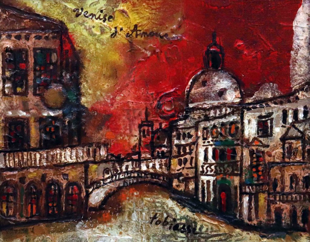 L’œuvre de Théo Tobiasse est imprégnée des thèmes de l’exil, de la femme mère-amante, des réminiscences de l’enfance en Lituanie, et de la Bible. L’exultation des sens et de la couleur, la musique, les voyages se mélangent en un magma poétique sur fond de Venise, New York et Jérusalem, ses villes de prédilection. Les mots, les phrases chargées d’émotion, viennent toujours ponctuer son œuvre, non pour l’expliquer mais pour la prolonger. Ses huiles sur toile, techniques mixtes, lithographies, et dessins sont recherchés par de nombreux collectionneurs. Théo Tobiasse a également réalisé des sculptures, vitraux, poteries, gravures, ainsi que des œuvres monumentales. Il est exposé en permanence depuis l’année 2000 sur les 4 sites de la Galerie Estades, à Paris, Lyon, Toulon, et Baden-Baden (Allemagne).